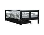 Cadru de pat copii cu sertare, negru, 80x160 cm, lemn masiv pin