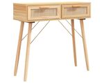 Masă consolă maro 80x30x75 cm lemn masiv pin și ratan natural