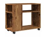 Masă laterală cu roți, negru, 70x35x60 cm, lemn prelucrat