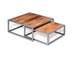Set mese de cafea, două piese, lemn masiv de acacia
