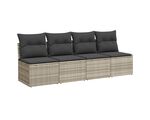 Canapea de grădină cu perne, 4 locuri, gri deschis, poliratan