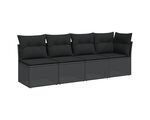Canapea de grădină cu perne, 4 locuri, negru, poliratan