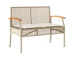 Bancă de grădină cu pernă, bej, poliratan/lemn acacia