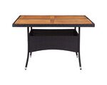 Masă de exterior, negru, poliratan și lemn masiv de acacia