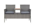 Bancă de grădină cu măsuță, 2 locuri, gri, 143 cm, poliratan