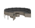 Canapea de grădină cu masă/perne, rotundă, gri, poliratan