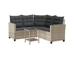 Canapea de grădină cu masă și perne în formă de L gri deschis