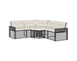 Canapea de grădină cu perne/taburet, formă L, negru, poliratan