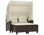 Canapea grădină 2 locuri baldachin și taburete, maro, poliratan