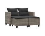 Canapea de grădină cu 2 locuri și taburete, gri, poliratan