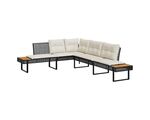Canapea de grădină cu perne, formă de L, poliratan negru/acacia