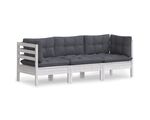 Canapea grădină cu 3 locuri, cu perne antracit, lemn masiv pin