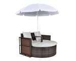 Pat de grădină cu umbrelă de soare, maro, poliratan