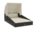 Șezlong cu acoperiș pliabil, negru, 200x114x128 cm, poliratan