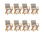 Scaune de grădină pliabile, 8 buc., gri, lemn masiv acacia