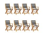 Scaune de grădină pliabile, 8 buc., negru, lemn masiv acacia