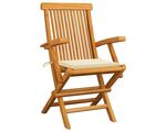 Scaune de grădină cu perne crem, 3 buc., lemn masiv de tec