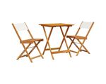 Set mobilier bistro, 3 piese, textil alb crem/lemn masiv
