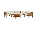 Set mobilier grădină cu perne crem, 6 piese, lemn masiv acacia