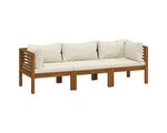 Canapea de grădină cu 3 locuri, perne crem, lemn masiv acacia