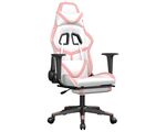 Scaun de gaming cu suport picioare, alb/roz, piele ecologică