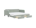 Pat de zi cu extensie și sertare gri deschis 100x200 cm catifea