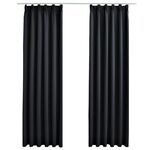 Draperii opace cu cârlige, 2 buc., negru, 140 x 175 cm