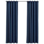 Draperii opace aspect in, cârlige, 2 buc., albastru, 140x245 cm