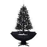 Brad de Crăciun cu ninsoare și bază umbrelă, negru, 170 cm, PVC