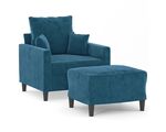 Fotoliu canapea cu taburet, albastru, 60 cm, catifea