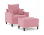 Fotoliu canapea cu taburet, roz, 60 cm, catifea