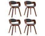 Scaune de bucătărie, 4 buc, gri, lemn curbat și material textil