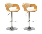 Scaune de bar, 2 buc., crem, lemn curbat și piele ecologică