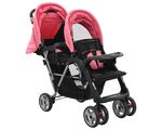 Cărucior tandem pentru copii, roz și negru, oțel