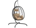Scaun suspendat tip ou cu pernă, gri taupe, poliratan și oțel