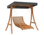 Pat balansoar cu baldachin, lemn masiv molid cu finisaj din tec