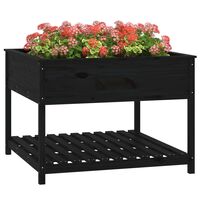 Jardinieră cu raft, negru, 82,5x82,5x81 cm, lemn masiv de pin