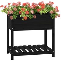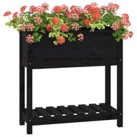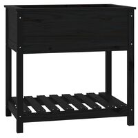 Jardinieră cu raft, negru, 82,5x54x81 cm, lemn masiv de pin