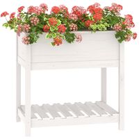 Jardinieră cu raft, alb, 82,5x54x81 cm, lemn masiv de pin