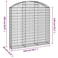 Coș gabion arcuit, 150x30x140/160 cm, fier galvanizat