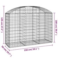 Coș gabion arcuit, 150x50x100/120 cm, fier galvanizat