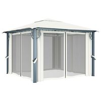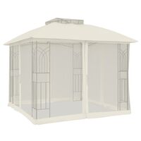 Foișor cu acoperiș dublu/pereți din plasă crem 2,94x2,94 m oțel