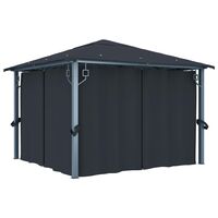 Pavilion cu perdele & șiruri lumini LED antracit 3x3 m aluminiu