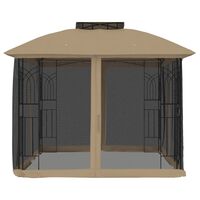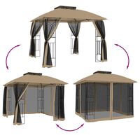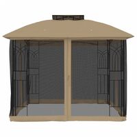 Foișor cu acoperiș dublu/pereți din plasă taupe 2,94x2,94m oțel