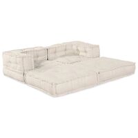 Canapea modulară cu 2 locuri, pouffe convertible din material crem