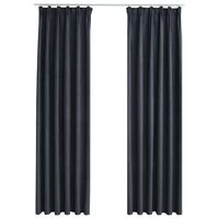Draperii opace cu cârlige, 2 buc., antracit, 140 x 245 cm