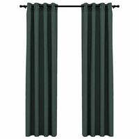 Draperii opace, aspect in, cu ocheți, 2 buc., verde, 140x245 cm