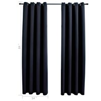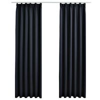 Draperii opace cu cârlige, 2 buc., negru, 140 x 245 cm
