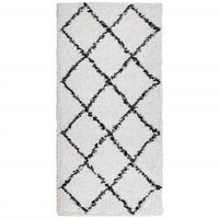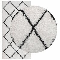 Covor pufos "PAMPLONA" cu fire înalte, negru și crem, 60x110 cm