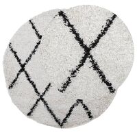 Covor pufos "PAMPLONA" fire înalte negru/crem modern Ø 120 cm
